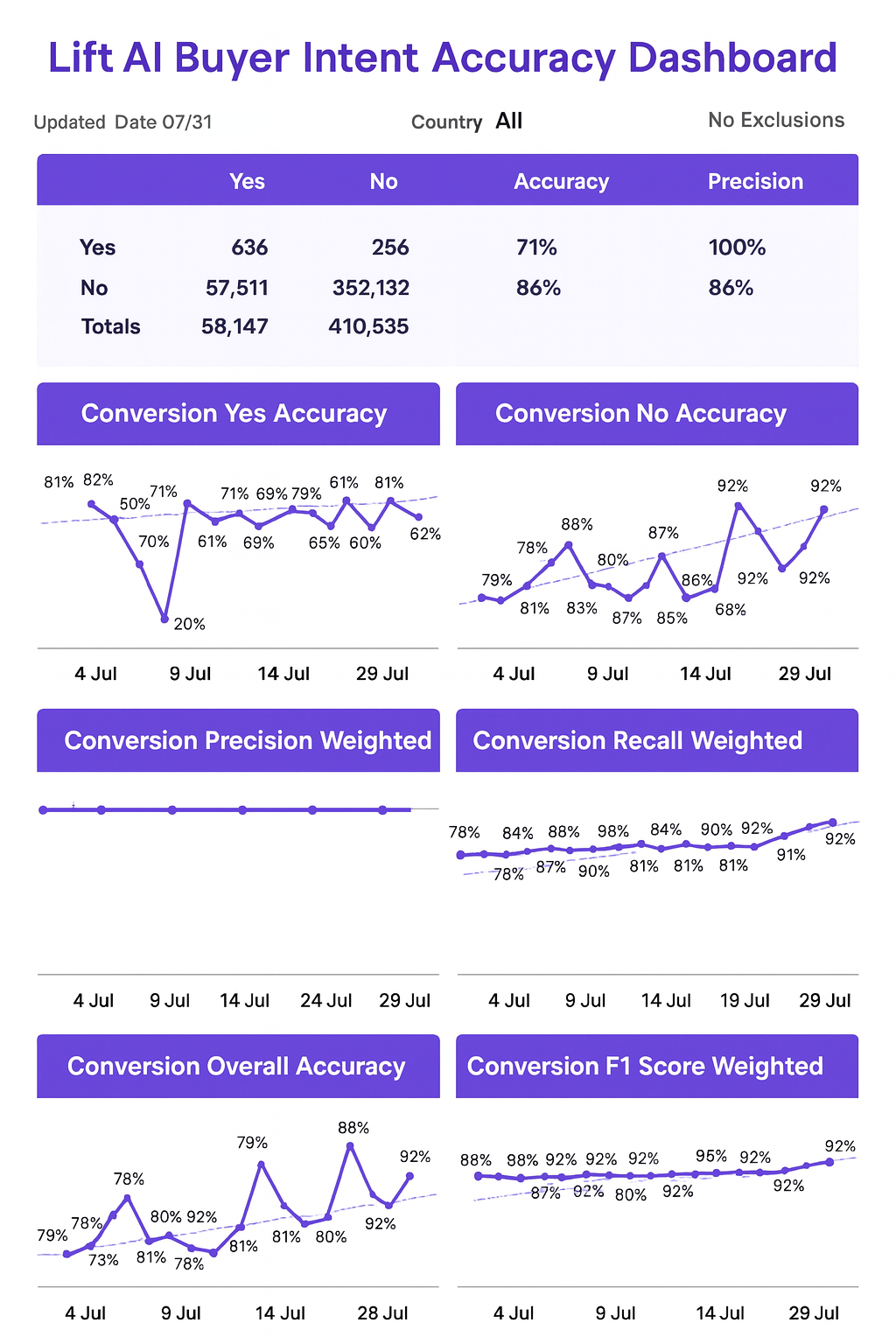 Eighty-five percent accuracy. And we can report on model accuracy with our Buyer Intent Accuracy Dashboard, any time, any day.